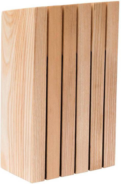 Dit essenhouten messenblok is ontworpen om een echt statement te maken, vooral wanneer deze in combinatie met onze Ron messen wordt gebruikt. Het blok heeft een hoekig ontwerp en de grote, goed verdeelde sleuven bieden plaats om 5 messen op een veilige manier op te bergen en te beschermen. Messenblok is voorzien van een anti-slip basis voor extra stabiliteit.